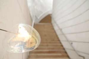 The light emitted from the crystal reaches the ceiling through...